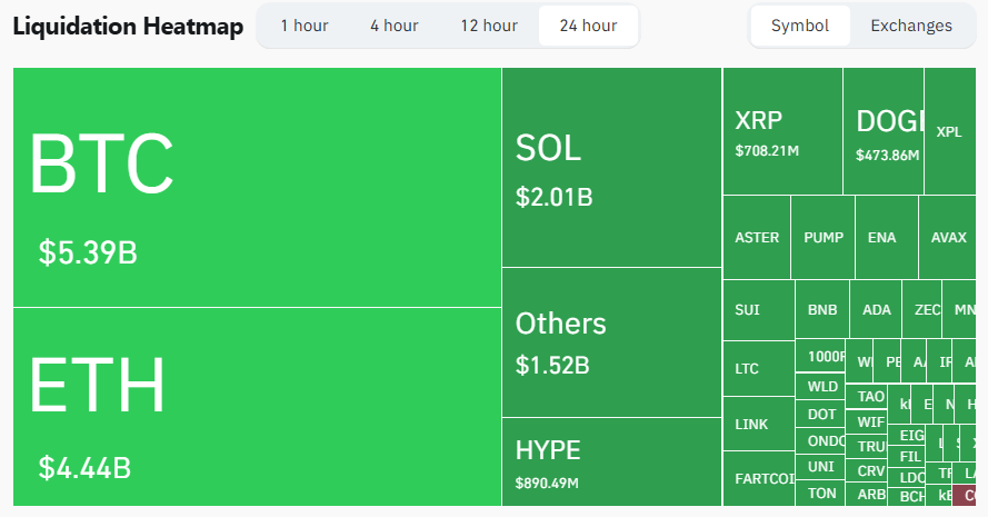 <11/10/2025: In the past 24 hours , 1,661,655 traders were liquidated , the total liquidations comes in at $19.34 billion>