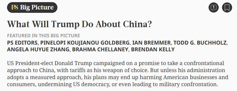 Không điều gì trong số này xảy ra trong môi trường tách biệt, Brendan Kelly, cựu quan chức Hội đồng An ninh Quốc gia Mỹ và là chuyên viên không thường trú về Kinh tế và Công nghệ Trung Quốc tại Viện Chính sách Xã hội Châu Á, nhận xét. Nếu Trump thực sự tiến hành áp đặt các mức thuế đã lên kế hoạch, Trung Quốc sẽ chuyển hướng xuất khẩu sang các thị trường mới nổi và Liên minh châu Âu, những nơi sẽ chịu tác động nặng nề của "sự dư thừa không theo thị trường" và "mất cân đối thương mại" từ Trung Quốc. Còn với Trung Quốc, thuế quan tăng cao và căng thẳng địa chính trị leo thang sẽ làm trầm trọng thêm suy thoái kinh tế, buộc lãnh đạo nước này phải đối mặt với các vấn đề cấu trúc mà họ đang né tránh.
