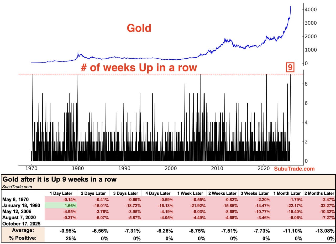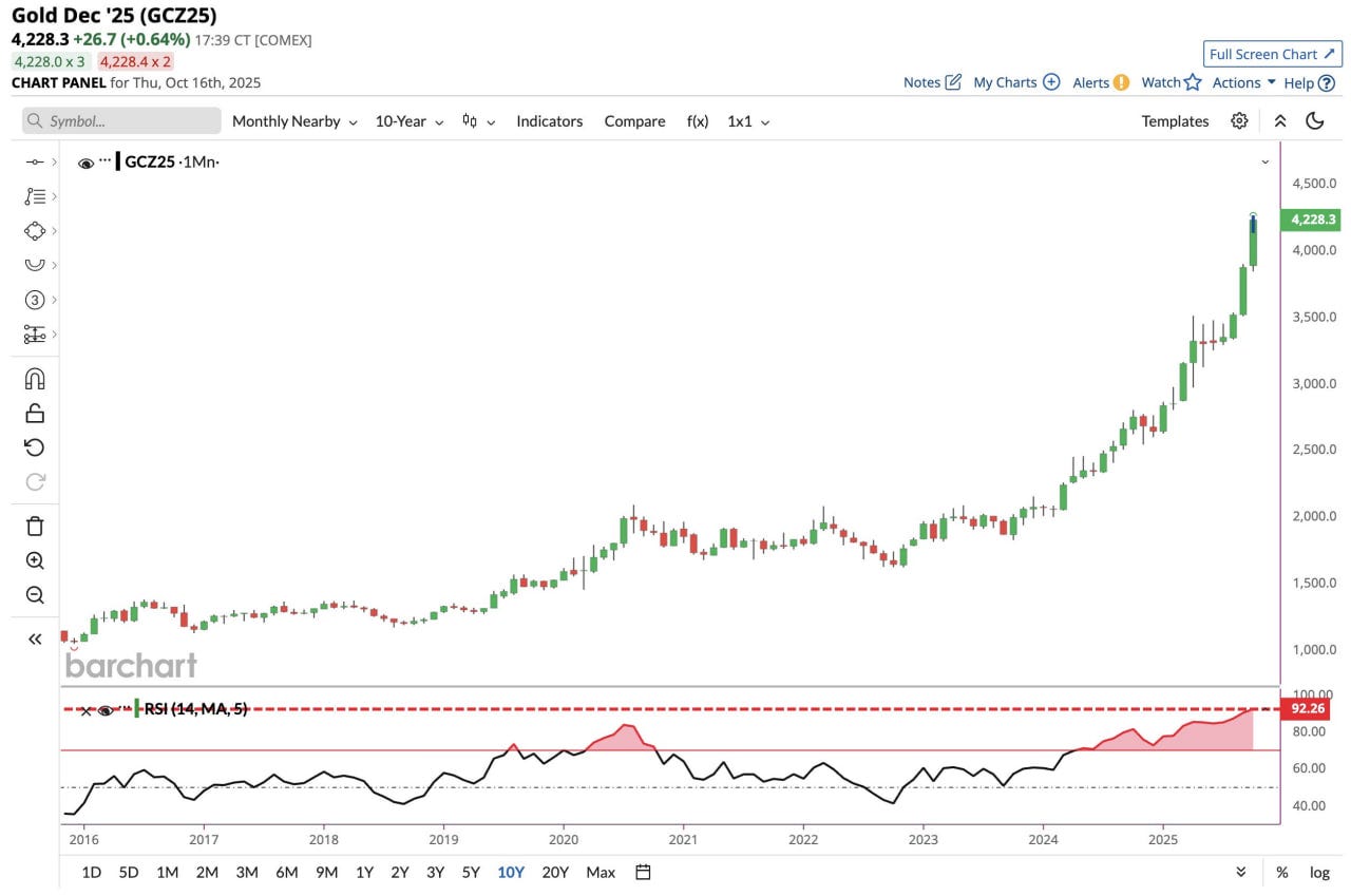 Tuần vừa qua, tâm điểm của thị trường là giá vàng vượt đỉnh mới, xuyên thủng mốc 4300 và sắp chạm 4400. Tính ra từ đầu năm tới giờ, vàng đã tăng khoảng 60%, các chỉ số phân tích kỹ thuật đều cho thấy ở mức fomo gần như cực điểm.